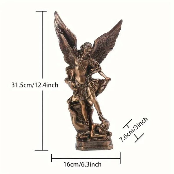 1st San Miguel Arcangel Staty, 31.75cm Bronsharts St Michael Den Ärkeängel Figur, Religiöst Tema Dekor för Inomhus & Utomhusbruk, Ingen Elektricitet Krävs, Ängeldekoration .